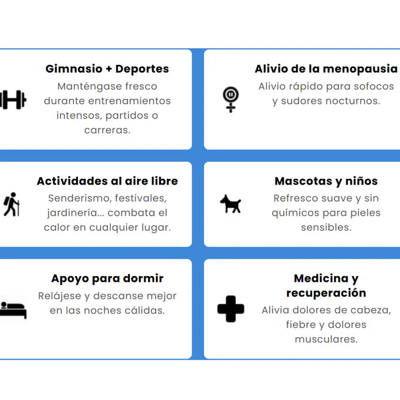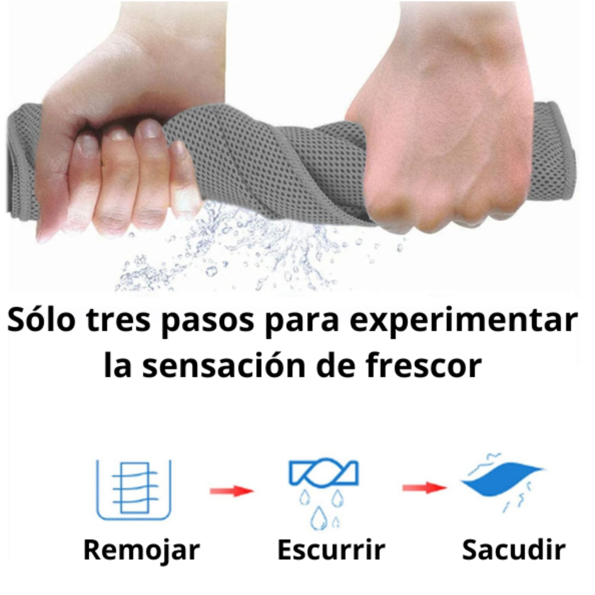 Se activa con agua y al agitarla genera un efecto refrescante durante horas. - Brinda confort rápido en climas cálidos o tras entrenamientos exigentes.